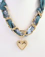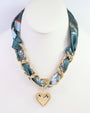 Add a fresh twist to your accessories with this playful scarf necklace. Featuring a delicate chain artfully twisted through vibrant teal printed fabric, it’s finished with an adorable heart charm that adds a touch of charm wherever you go. Perfect for elevating any outfit with a fun and flirty vibe