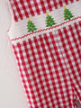 Dress your little man for the holiday season with our Christmas Tree Smocking Embroidered Boys Romper. Featuring a festive Christmas tree design, this romper is perfect for family gatherings and photos. Made with high-quality materials, it provides comfort and style for your little one. Get yours today and make this Christmas a memorable one!